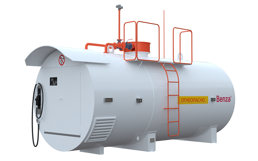 Контейнерная АЗС представляет собой цилиндрический горизонтальный резервуар с технологическим отсеком или площадкой для размещения топливораздаточного и дополнительного оборудования.