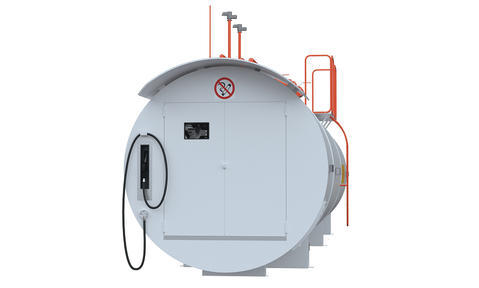 Контейнерная АЗС представляет собой цилиндрический горизонтальный резервуар с технологическим отсеком или площадкой для размещения топливораздаточного и дополнительного оборудования.