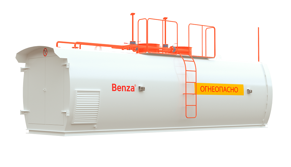 - технологический отсек для размещения топливораздаточного оборудования и агретатов (выполняется в закрытом или открытом виде в зависимости от условий эксплуатации, может быть как с одного торца так и с двух, оснащается порошковым модулем пожаротушения, освещением, поддоном аварийного пролива);